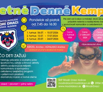 Aj tento rok pre vás pripravujeme skvelé detské denné kempy. Zima bola dlhá a väčšina detí bola počas korony izolovaná od svojich rovesníkov. Počas letných prázdnin 2021 sa radi postaráme o vaše ratolesti. Pod vedením kompetentných a profesionálnych inštruktorov si budú môcť v dennom letnom kempe užiť množstvo zábavy, spoznajú nových kamarátov a naučia sa byť si istejší vo vode. Keď neviete čo s deťmi počas leta, naše kempy sú skvelým riešením. ... Čítajte viac